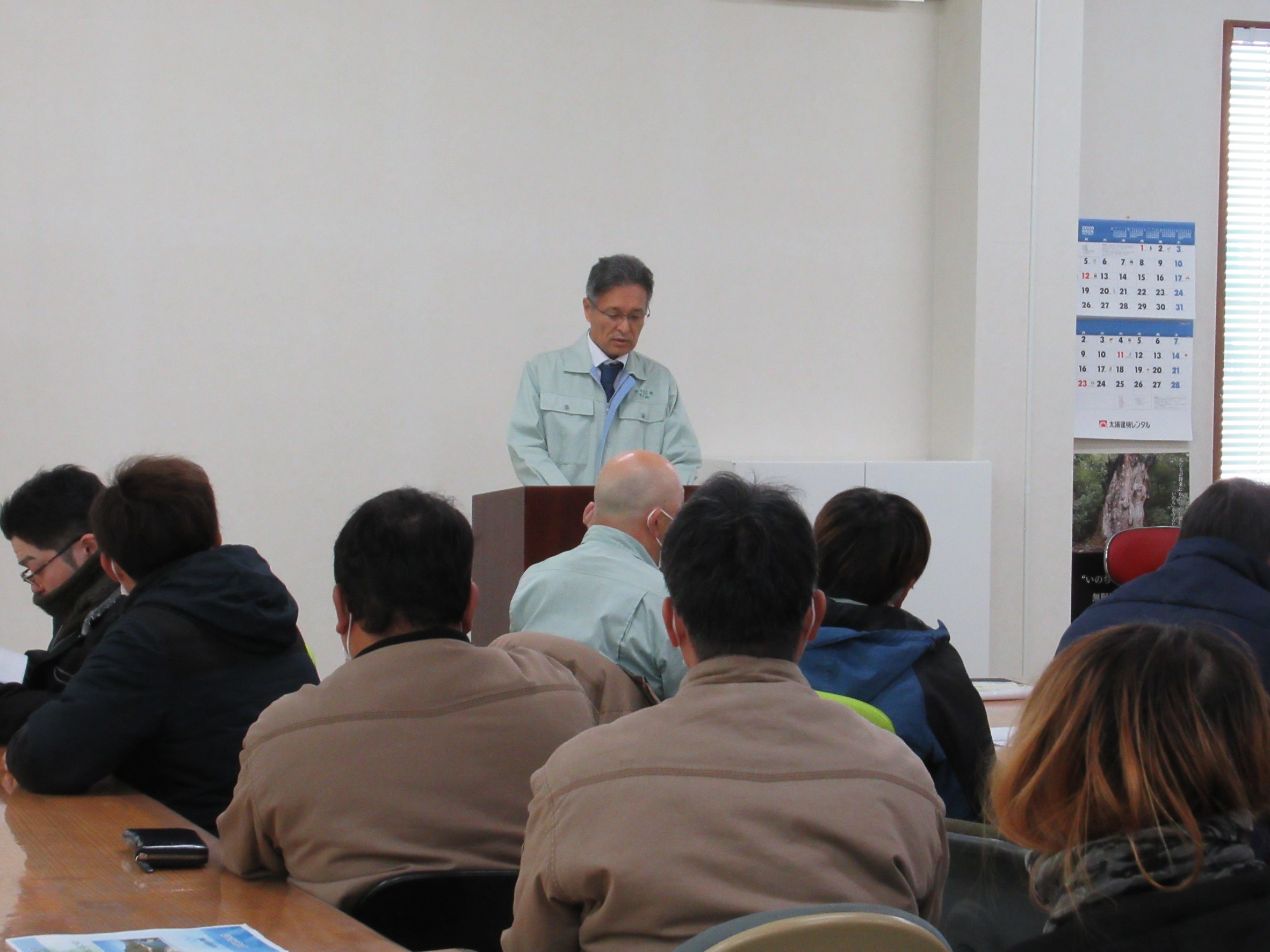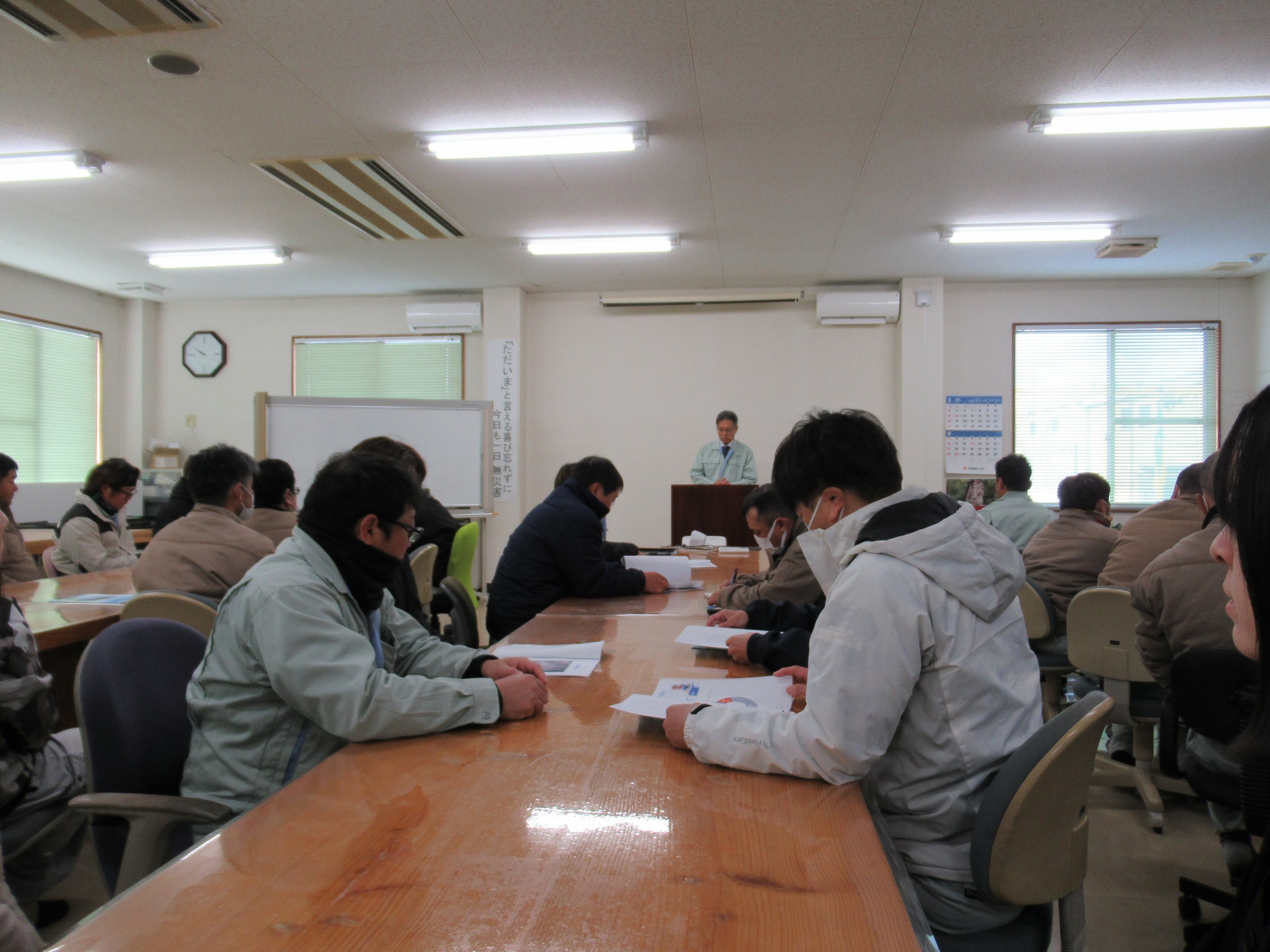 社長からの挨拶があり、新年の目標やこれからの時期寒波などの影響で考えられる交通事故等を全員で確認し再度気を引き締めました。